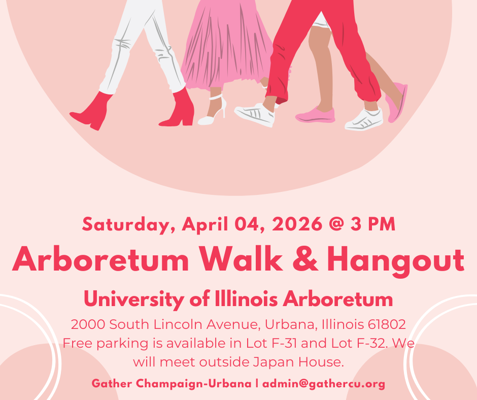 Join us for a relaxed afternoon at the University of Illinois Arboretum on Saturday, April 4 at 3:00 PM. We’ll walk the trails, enjoy the outdoors, and spend time together. If the weather is nice, we’ll bring a frisbee, football, and blankets so we can hang out on the grass. The cherry blossoms may be starting to bloom, but we’ll enjoy the space either way. Parking is available in Lot F-31 (St. Mary’s Road and Lincoln Avenue) and Lot F-32 (on Lincoln Avenue across from the Vet Med complex). Parking should be free on Saturdays. The closest bus stop is Lincoln at Japan House. If you need a ride, let us know! If the weather is too cold or rainy, we will share a backup plan in advance.